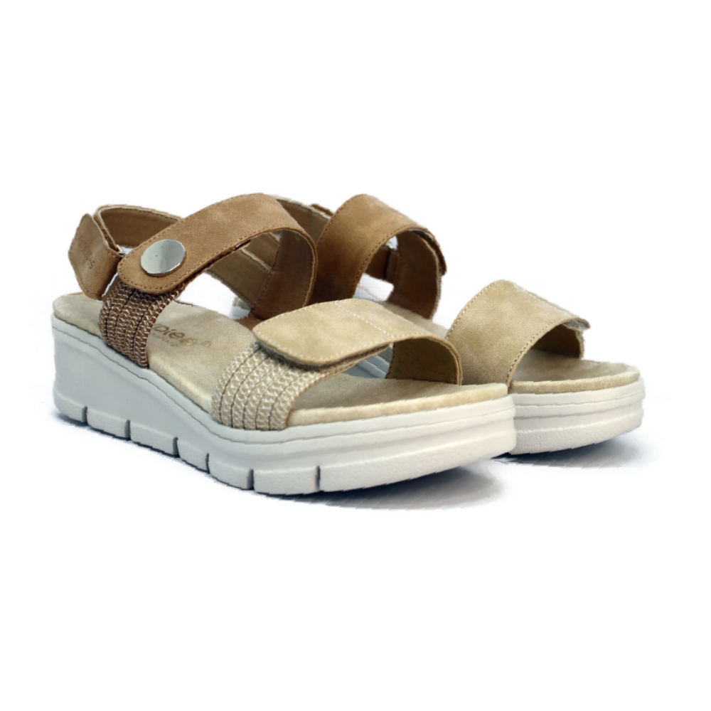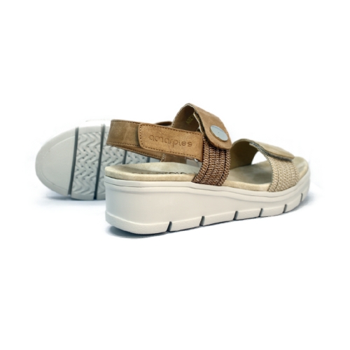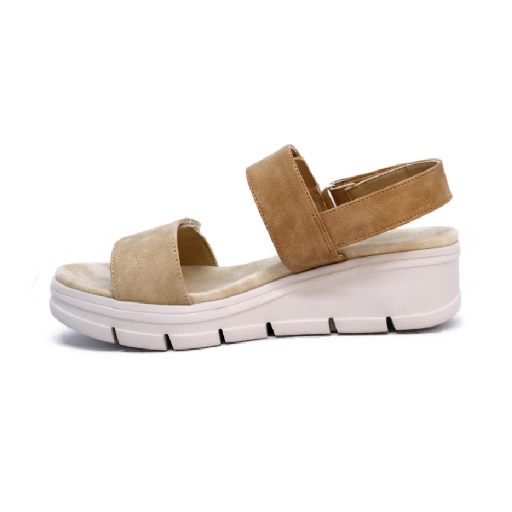 Diseño: Sandalia casual en color beige con dos tiras anchas ajustables mediante cierres de velcro.