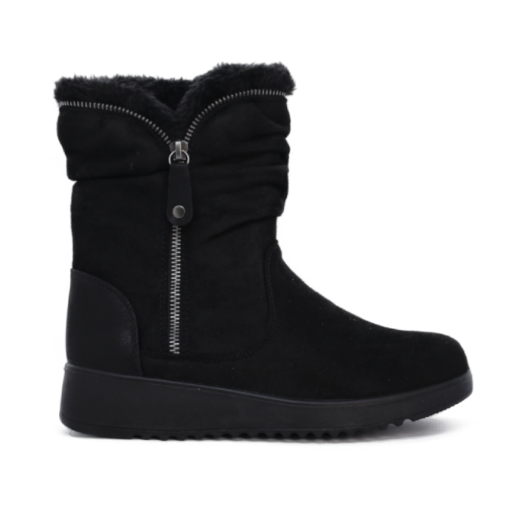 La caña media , con su fruncido y cuello acolchado con borreguito, asegura que el tobillo permanezca bien abrigado.