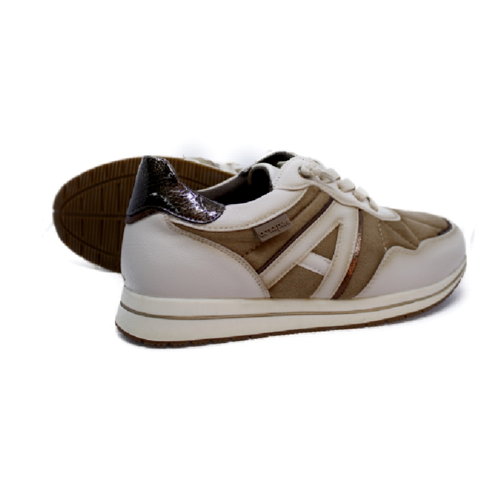Las deportivas AMD29399 CREMA ARENA de Amarpies se caracterizan por su ergonomía, ligereza, flexibilidad, y por adaptarse en todo momento a la forma natural del pie proporcionando descanso y libertad de movimiento. Se fabrican con horma amplia que ofrece un calce ancho que no aprisiona.