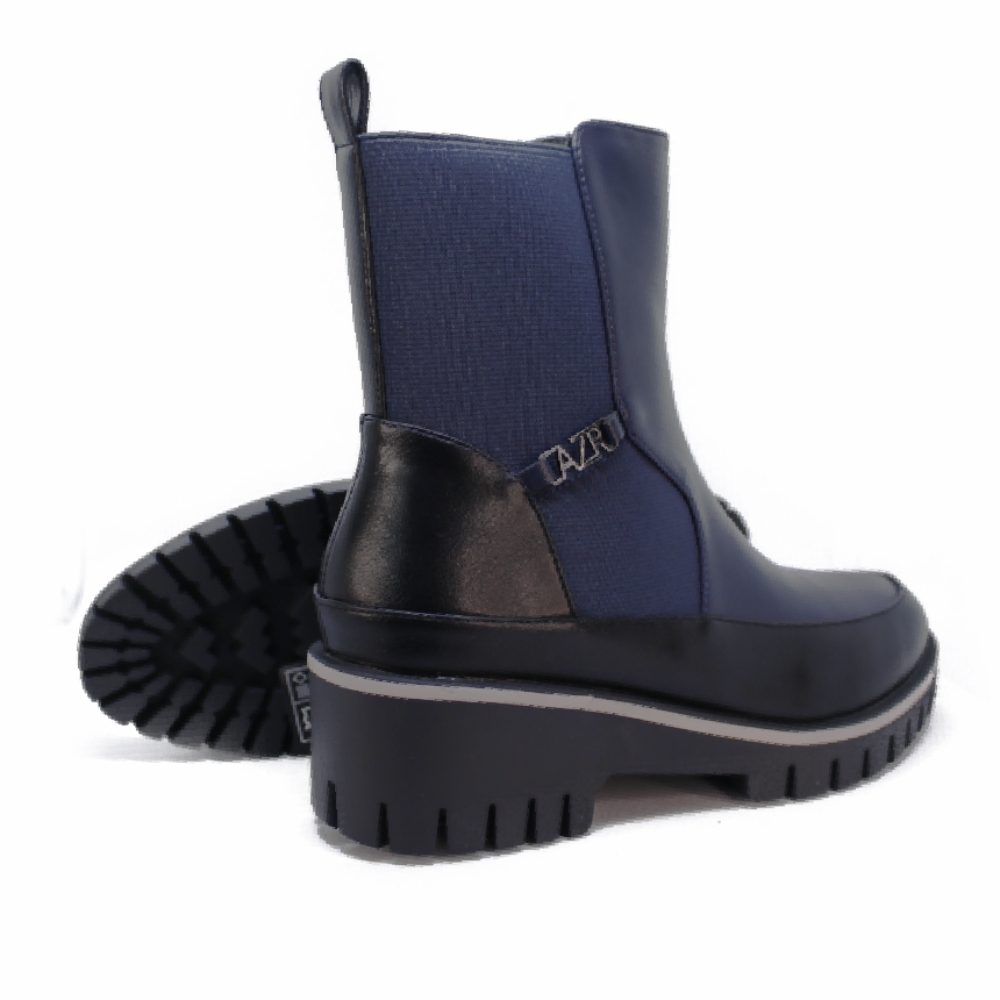 La cremallera lateral decorada con el logo AZAREY aporta un detalle distintivo y actual, mientras que la suela chunky dentada garantiza comodidad y agarre en cada paso. Su diseño robusto pero estilizado lo convierte en un botín perfecto para mujeres que buscan marcar tendencia sin renunciar a la practicidad.