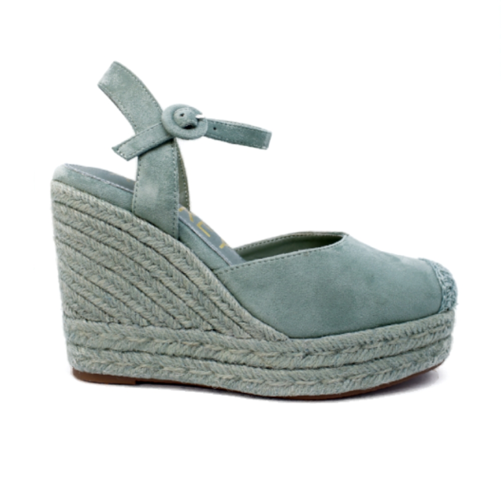 Alpargata de ante de la marca Azarey con plataforma de 10,5 cm en parte trasera y 3,5 cm en parte delantera. Destaca por color al tono en plataforma.