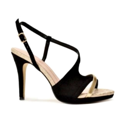 Esta sandalia de fiesta con plataforma en color negro y dorado para mujer es un modelo que será la sensación esta temporada de verano y es un must have que debes tener si o si. Este modelo combina un diseño moderno, junto con su tacón fino que le da un aporte de elegancia donde no pasarás desapercibida en ninguna de las fiestas que asistas.