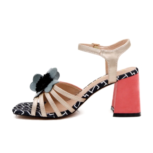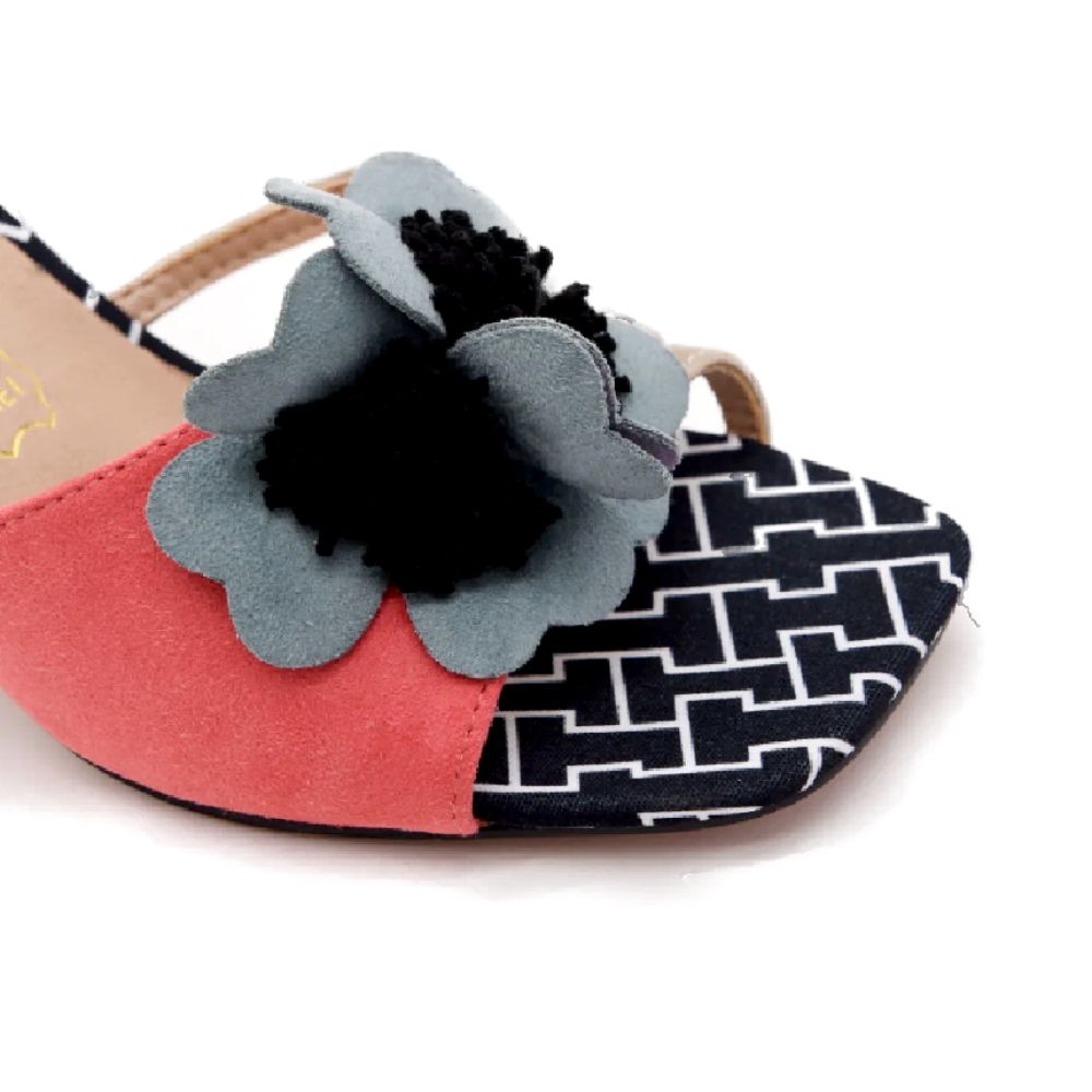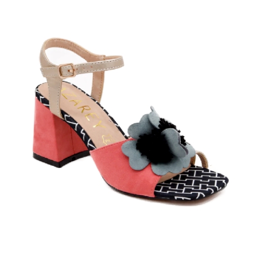 Estas sandalias de tacón ancho en coral son el equilibrio perfecto entre originalidad y confort. Su diseño incluye un adorno floral en relieve, que aporta un toque femenino y sofisticado. La correa ajustable en tono beige brinda una sujeción segura, mientras que el tacón ancho forrado en ante garantiza estabilidad y comodidad. Además, la suela con estampado geométrico añade un detalle moderno y elegante. Perfectas para eventos especiales o para darle un giro chic a cualquier look.