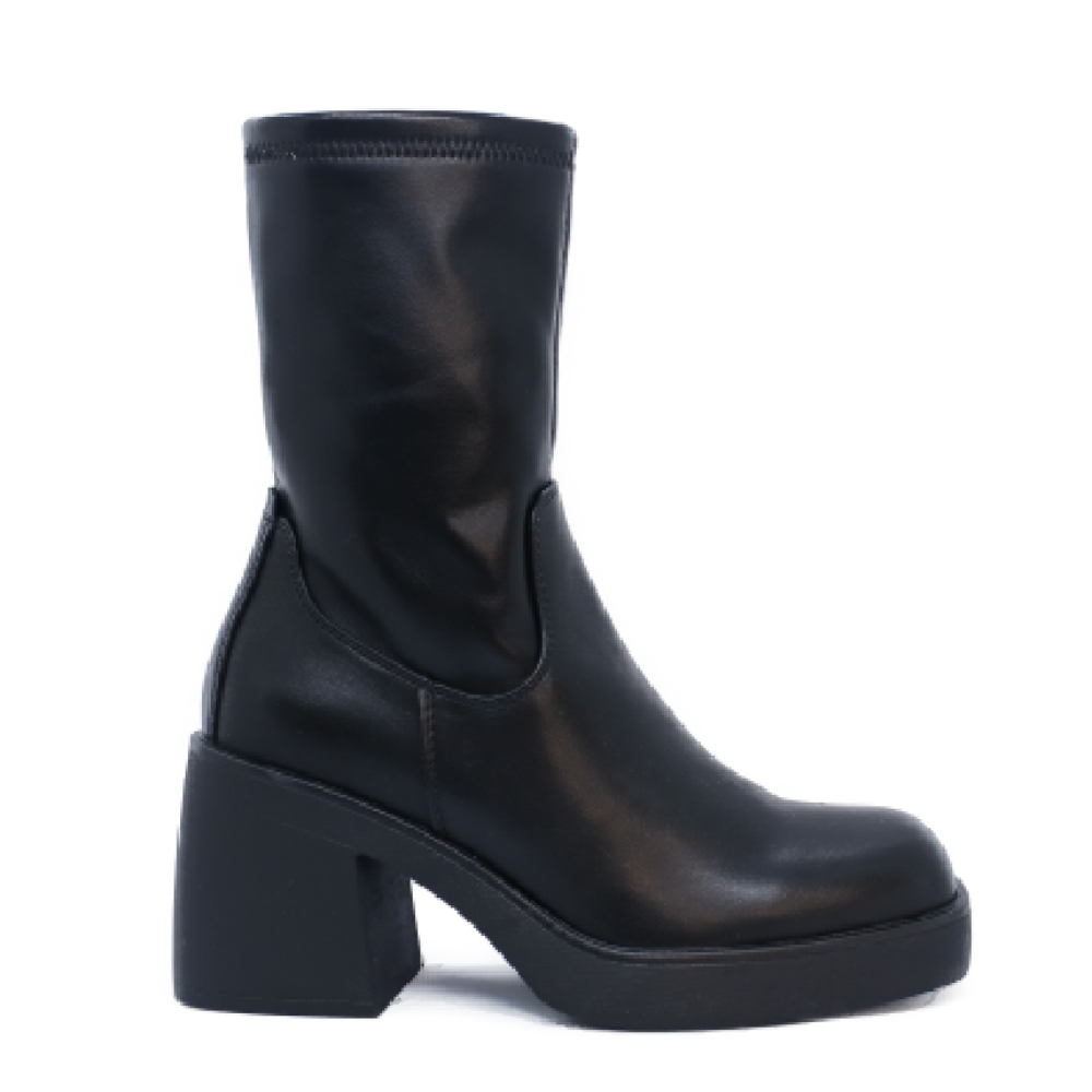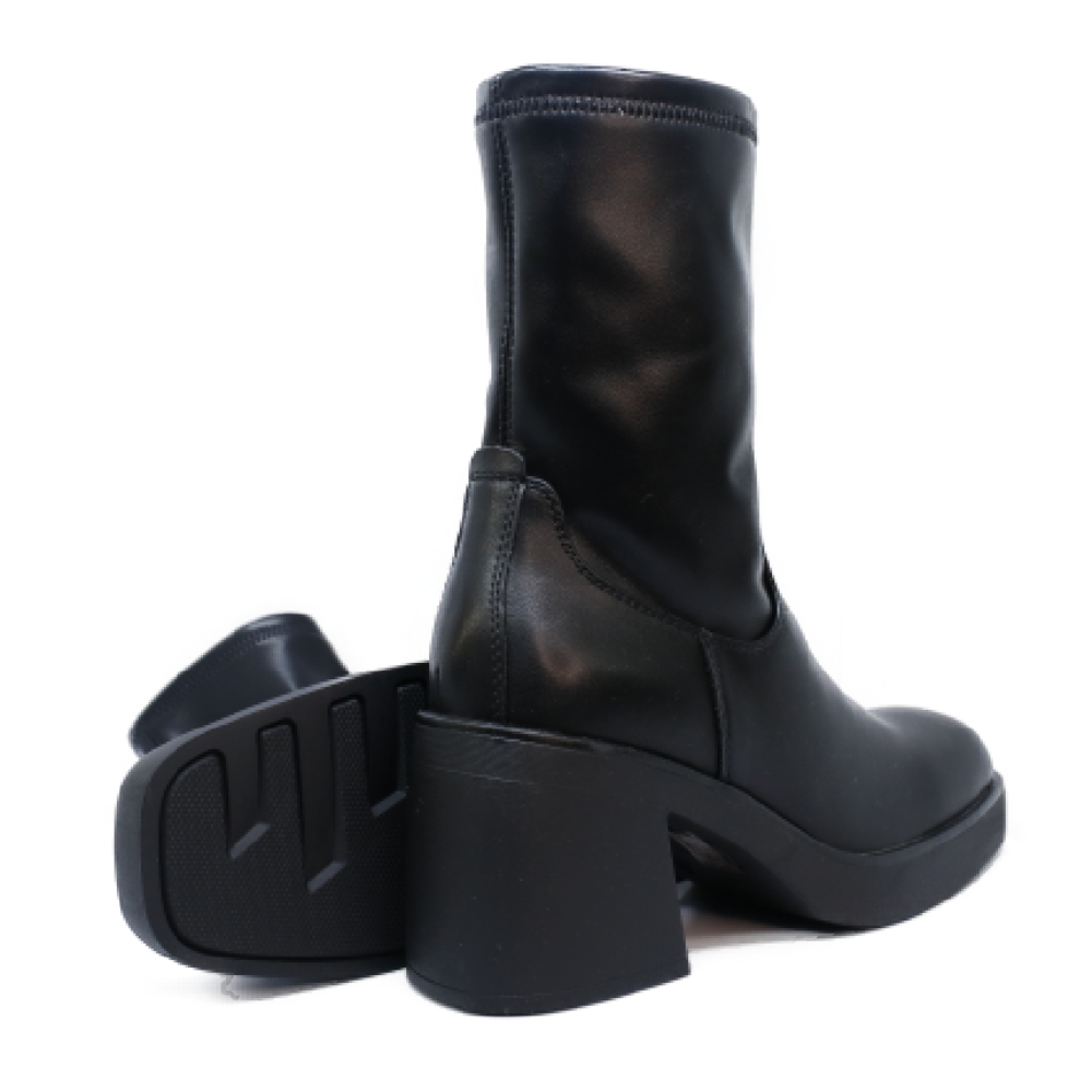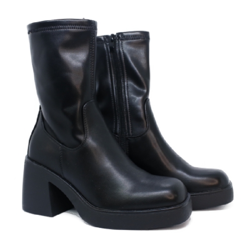 Botín de mujer realizado en suave material sintético y elástico en la caña. Suela truck de 7 cms y plataforma de 3 en su parte delantera. Un botín que se va a convertir en tu mejor aliado este invierno por su fantástica combinación con multitud de outfits. Suela de goma ligera antideslizante