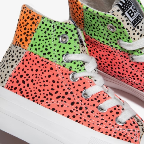 Este modelo abotinado está construido en textil lona con un diseño patchwork en distintos tonos. Suela de goma blanca y lettering personalizado en el talón. Presenta una altura de 4 cm y cuenta con el emblema de nuestra bandera en el lateral.