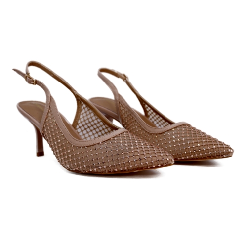 Silueta "Slingback" (Destalonado): Cuenta con una fina tira trasera que estiliza el pie y se ajusta mediante una pequeña hebilla lateral metálica, permitiendo una sujeción personalizada y segura.