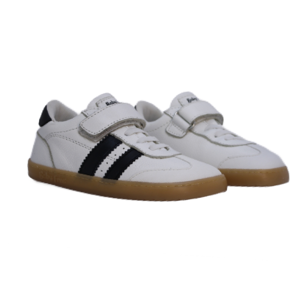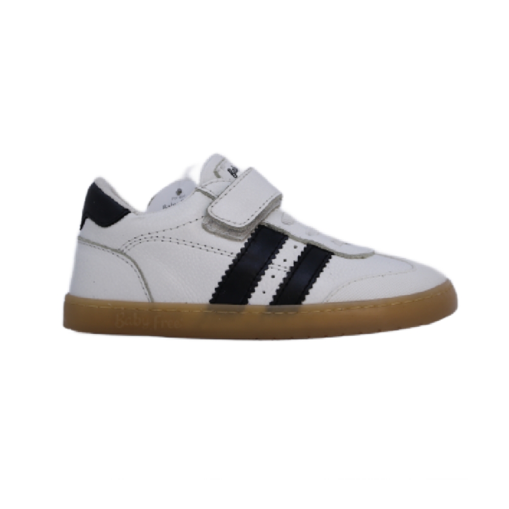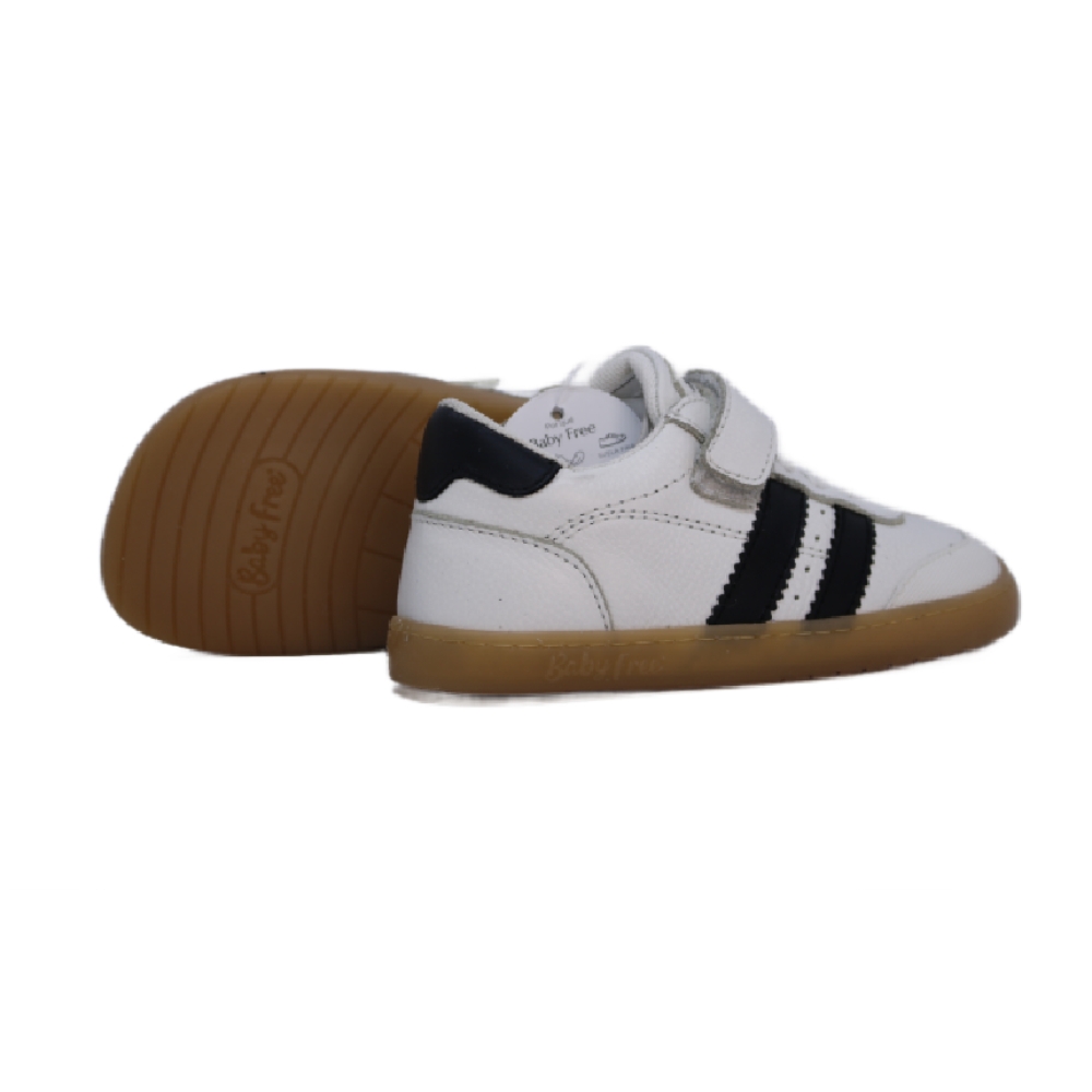 Zapatillas deportivas para bebé respetuosas tipo barefoot con drop 0, de gran versatilidad para sus aventuras diarias. Material exterior combinado de piel y serraje. Todos nuestros zapatos se realizan con pieles libres de cromo. Forro interior y plantilla de algodón transpirable. Suela de caucho ligera y flexible. Cierre con tira ajustable que garantiza una perfecta sujeción del pie.