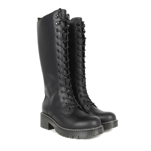 Bota militar caña alta con cordones y cremallera interna que facilita un ajuste perfecto para todo tipo de piernas. Suela de goma de 4 cms.