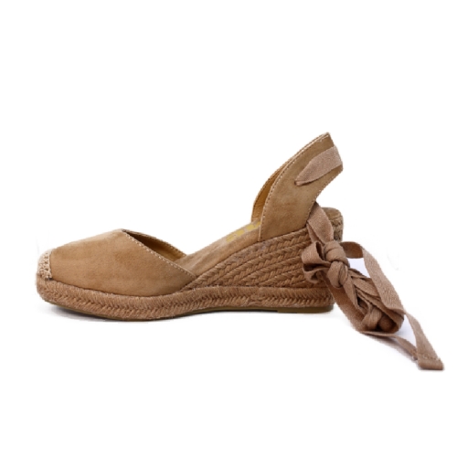 Sujeción Personalizada: Su cierre mediante cintas de algodón permite anudarlas al tobillo o a lo largo de la pierna, ofreciendo un ajuste seguro y un toque romántico y femenino.