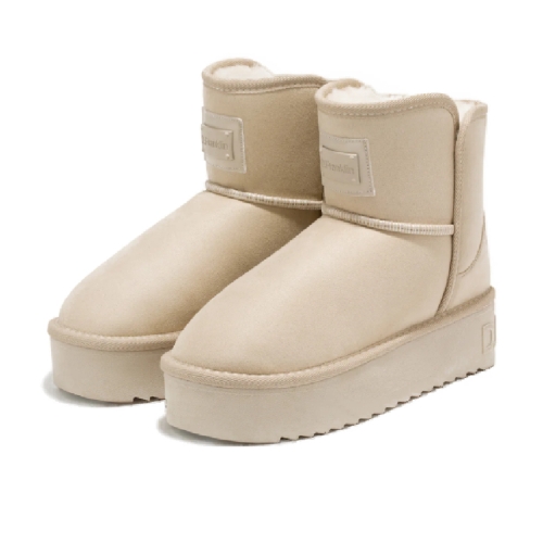 Botas australianas beige con plataforma de corte bajo. Nuestra cápsula de invierno desciende de las laderas hacia tus outfits. Un diseño con estética après-ski concebido para los días más fríos.