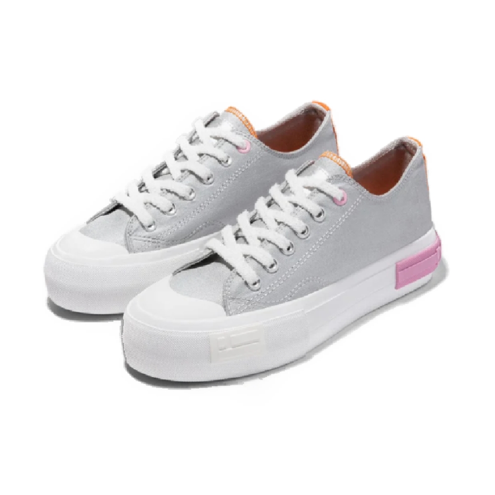 Nuestro diseño One Way plateado está confeccionado en textil lona. Suela de goma blanca y detalle de lettering rosa. Presenta una altura de 4 cm y cuenta con el emblema de nuestra bandera en el lateral.