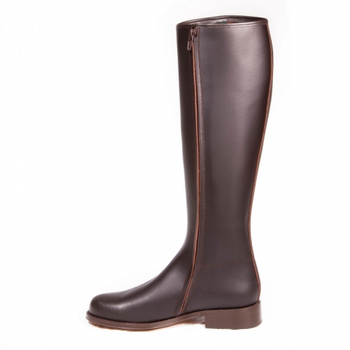 Bota campera inspiración hípica, piel engrasada, color castaña, con cremallera interior. 100 % Made in Valverde