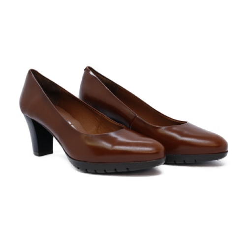 Zapato de salón marca Desireé para mujer elaborados en piel lisa de gran calidad en color marrón. elegantes con puntera redondeada y corte redondedado en el empeine.