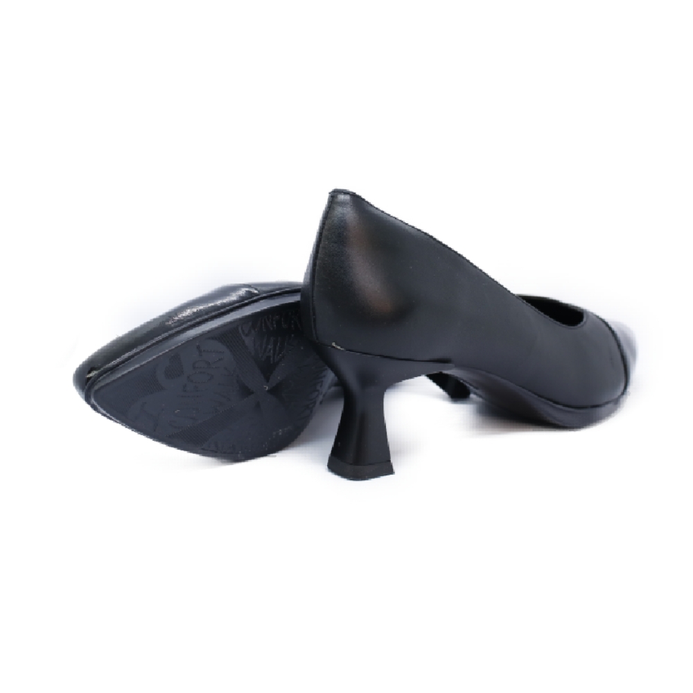 Zapatos para mujer de la marca DESIREE SHOES. En color negro con puntera charol, fabricado en piel, altura del tacón de  4,5cmcm y plantilla de piel.