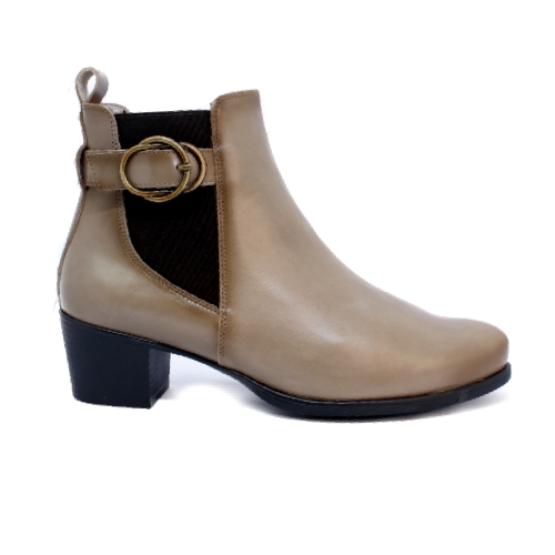 Botin de mujer de la marca española Desiree. Piel de la mejor calidad. Elástico lateral y cremallera para un buen ajuste. Piso de goma antideslizante, tacón muy comodo y estable. Caña de 10cm. Un fondo de armario.