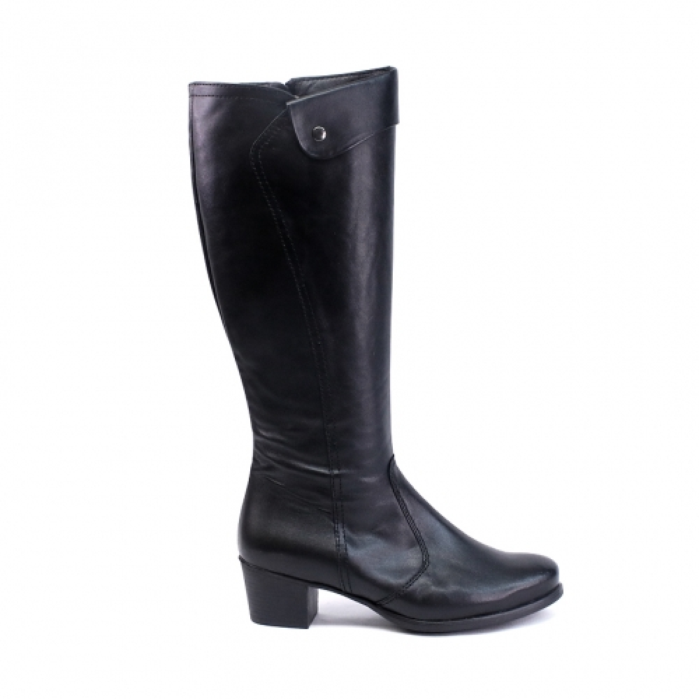 Bota de mujer en piel de primera calidad con tacón tacón de 4 cms y suela de goma de 1 cm de grosor que proporciona un gran aislamiento térmico y agarre en los días de lluvia. La caña va forrada en tejido aislante.