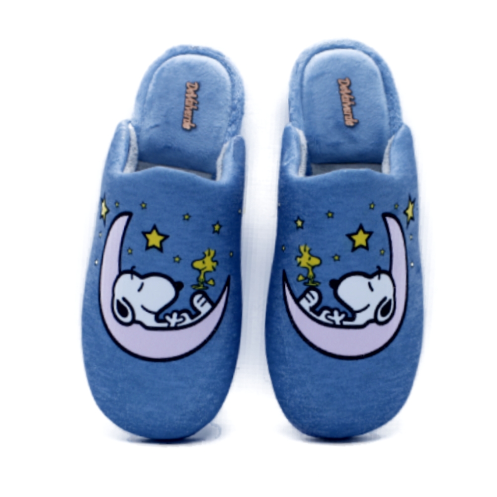 Zapatilla de casa con Snoopy en la luna.  Modelo cómodo y abrigado para los días más fríos.  Ideales para regalar y sorprender a personas queridas. Hecho en España. Modelo 1171. Color gris. relajantes, termoestables, flexibles, lavables y anti bacterias. Suela de goma antideslizante.