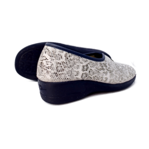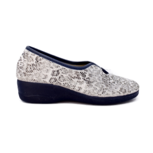 Zapatilla modelo 767 en color marino. Lleva un elástico en el empeine para un mayor ajuste. Zapatillas muy cómoda y resistente para usar a diario, tiene un tejido exterior que da apariencia de zapato y el forro interior transpirable, con una ligera cuña de 4 cm.