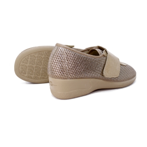 Descubre el confort absoluto con estas zapatillas de casa DeValverde en un elegante tono arena con efecto brillante. Diseñadas sin costuras interiores, son perfectas para pies delicados o anchos, ofreciendo una sensación de suavidad y bienestar desde el primer paso.