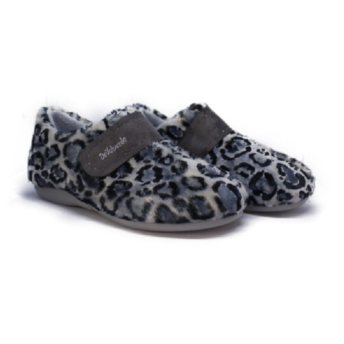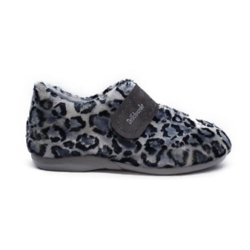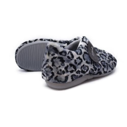 Estas cómodas zapatillas de casa para mujer  destacan por su diseño elegante y funcional. Están confeccionadas con un suave tejido gris con estampación animal print.