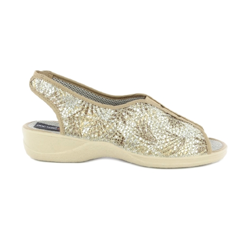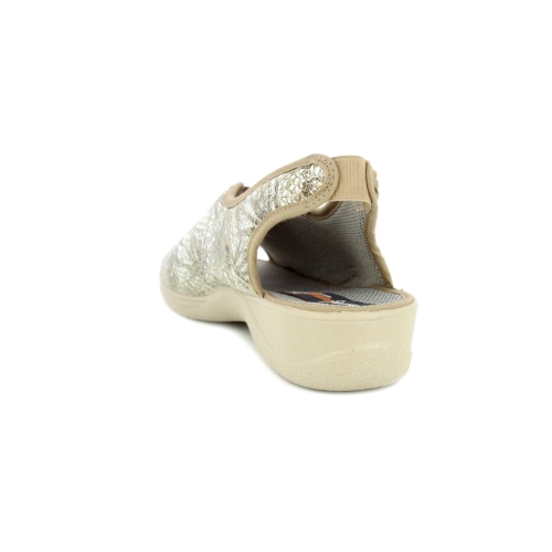 Sandalia de verano de calle para mujer, fresca y muy cómoda, playera estilo sandalia puntera y talonera abiertas, corte fantasia, en color beige. Adornos: ribete de tela con pespuntes al tono, tres prácticos elásticos en la pala y otro en la talonera, que permiten una fácil colocación y un perfecto ajuste para el calce de los pies más delicados. Forro y plantilla acolchados, (ambos en rejilla beige). Piso de caucho natural negro flexible y antideslizante que contribuye a que sea un artículo más estable y tenga una gran adherencia, con pequeña cuña de 3,5 cm en la parte del talón, de última generación que aporta gran elasticidad al zapato y proporciona mayor sensación de confort y comodidad al andar. Fabricada en España.