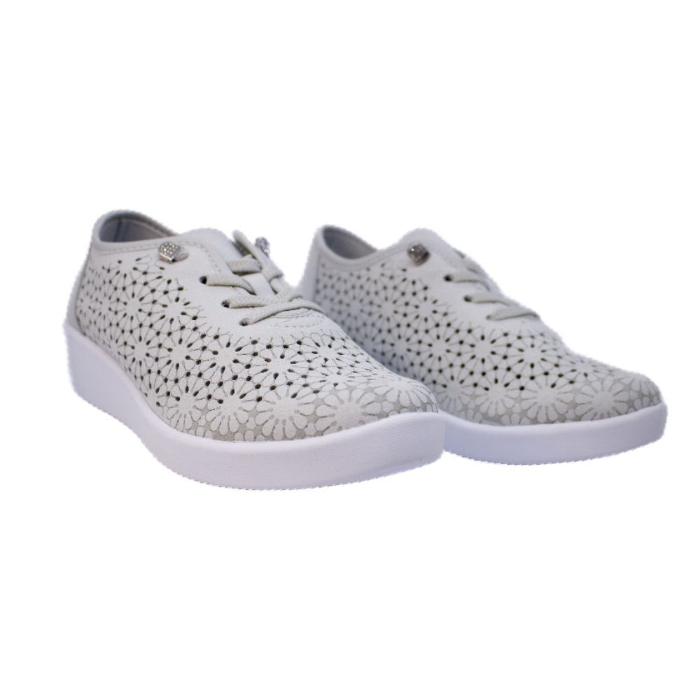 Su diseño ligero y ergonómico, junto con la suela antideslizante, te garantizan estabilidad y seguridad en cada pisada. El tono hielo versátil y el sutil patrón floral añaden un toque de sofisticación a cualquier look, desde el más casual hasta el más elegante.