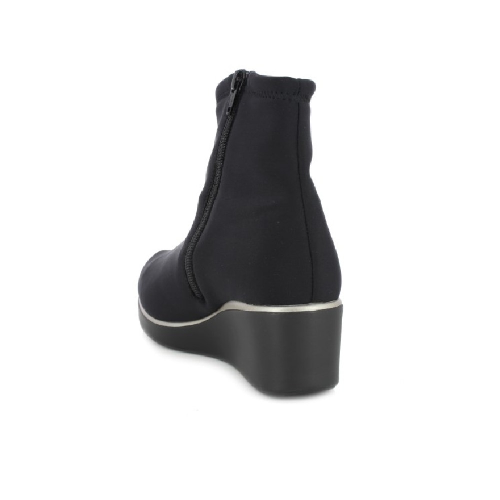 Botín de licra para mujer con tecnología SECOTEX, suela tipo cuña y plantilla extraíble. Cierre con cremallera en el interior. SECOTEX es una membrana hidrofuga y transpirable exclusiva de Doctor Cutillas que dificulta la entrada de agua en los pies, y al mismo tiempo facilita la evaporación de la humedad, manteniéndolos secos y evitando malos olores. La integración de la tecnología SECOTEX exclusiva de Doctor Cutillas en el calzado además de impedir la entrada del agua, garantiza una efectiva transpiración y evacuación del sudor, manteniendo en equilibrio la temperatura interior de nuestros pies.