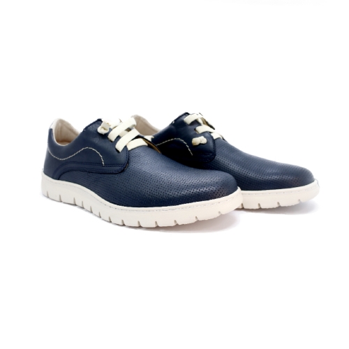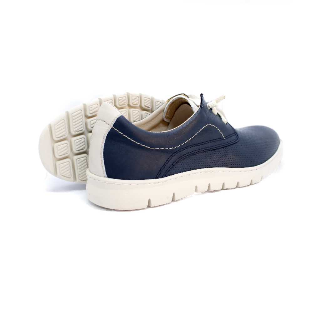 Blucher para hombre en piel napa Azul. Zapato de cordones fabricado en piel napa con cierre elástico. Este zapato destaca por su suela ultra ligera y muy flexible que hace que caminar resulte muy cómodo. Un zapato perfecto para todos los días. ERASE es una marca de calzado española. Entre sus valores principales están el apoyo a la economía local y de proximidad, el uso de pieles de calidad superior y la defensa del medio ambiente. Quien usa un calzado ERASE sabe que calza calidad, confort y ética con unos diseños únicos.