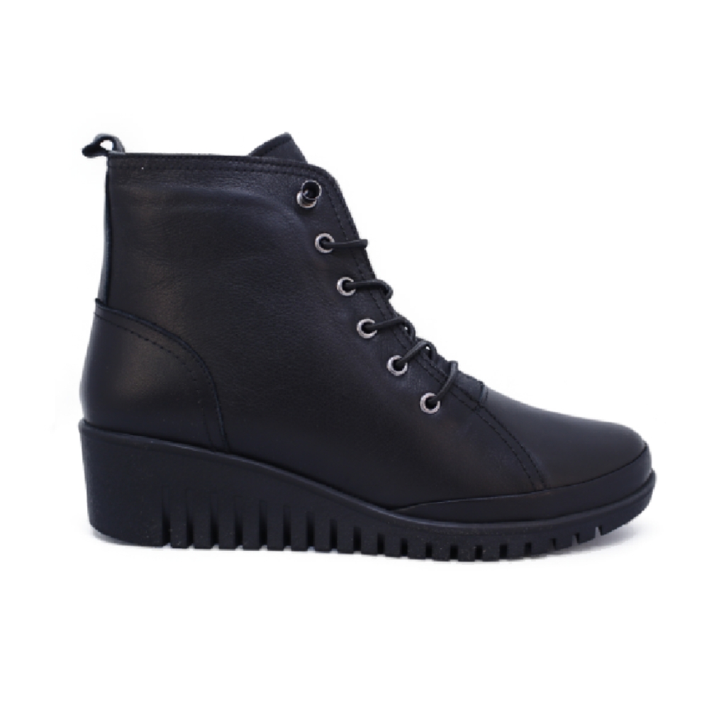 Descubre la combinación perfecta de estilo y comodidad en estos botines de piel de color granate. Su diseño funcional incluye una cremallera interna que facilita su calce, mientras que los cordones elásticos aseguran un ajuste perfecto y cómodo sin necesidad de atarlos.