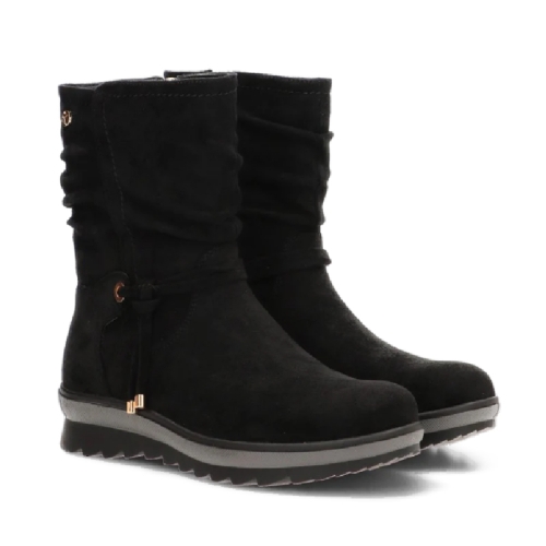 Este botín, con su distintivo y elegante color negro, se adapta a una gran variedad de ocasiones, desde una jornada en la oficina hasta una salida de fin de semana. Su diseño diario se caracteriza por su silueta limpia y minimalista. El material exterior de antelina le confiere un tacto suave y un acabado sofisticado, ideal para cualquier outfit.