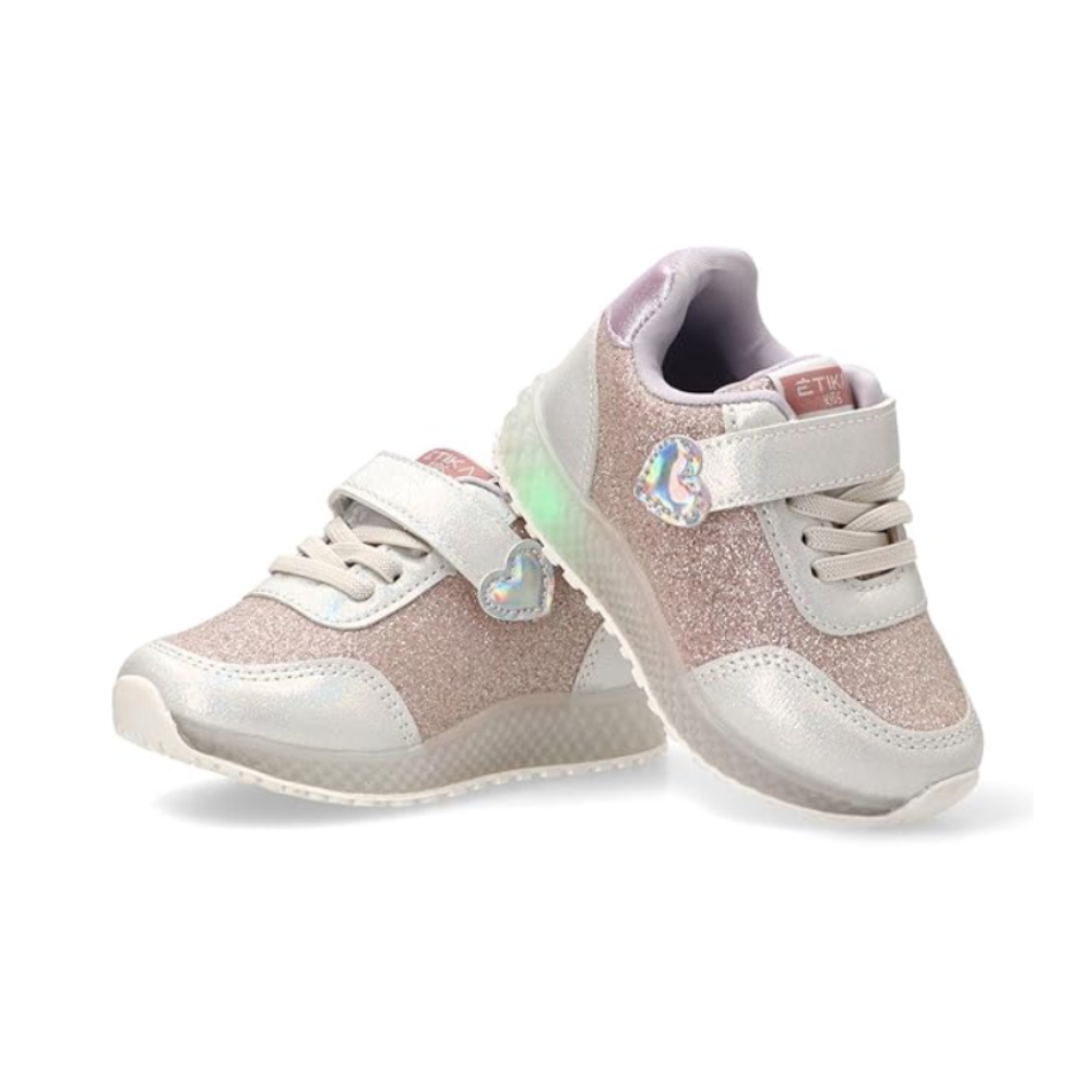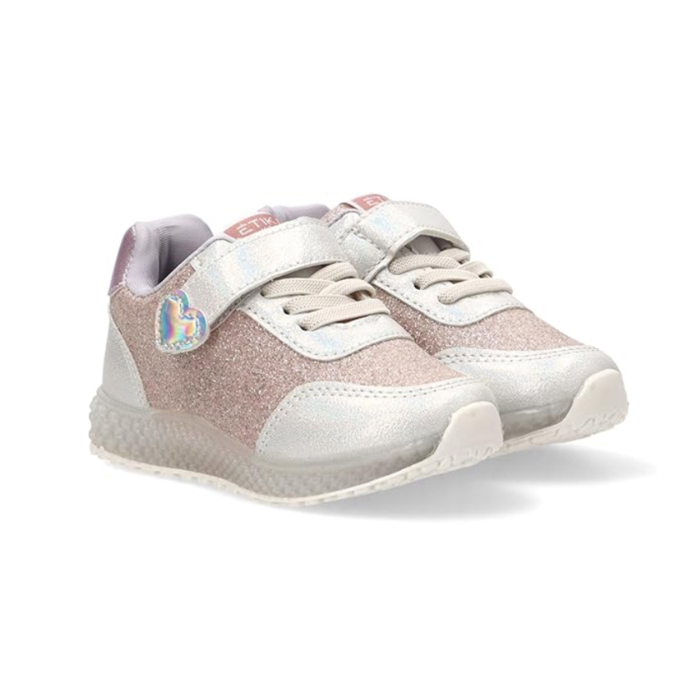 Estas deportivas de ETIKA son ideales para las más pequeñas que adoran brillar en cada paso. Con un diseño en tonos rosados con purpurina y detalles metalizados, aportan un estilo moderno y alegre que combina perfectamente con cualquier look casual.