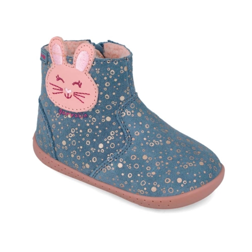 Botines BAREFOOT RESISTENTES AL AGUA para niñas fabricados en serraje decorado con pequeños topitos metalizados