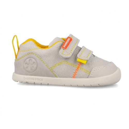 Las sandalias de primeros pasos Biomecanics en color beige combinan un diseño pensado para el crecimiento del pie con detalles prácticos para el día a día. Su acabado mate y la puntera redonda ofrecen una silueta suave y protectora, mientras que el cierre de tiras ajustables facilita el calce y la sujeción en cada movimiento.