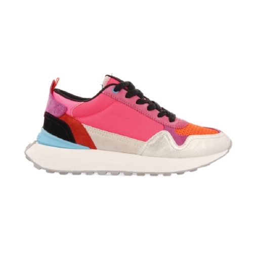 ¡Súmate al rosa con Gioseppo! El 10% de los beneficios de este modelo se destina a FECMA (Federación Española Contra el Cáncer de Mama) para programas de investigación a través de la beca SEOM. Sneakers multicolor de estilo retro que combinan piezas y materiales en tonos vibrantes. Plantilla Gio Memory Effect, sistema de efecto memoria que suaviza la pisada aportando una comodidad extra. Forro y plantilla transpirables de poliéster reciclado. Piso de EVA muy ligero. Este modelo cuenta con el sello PODOLOGIC, que certifica que ha sido diseñado junto a podólogos expertos en la salud del pie.