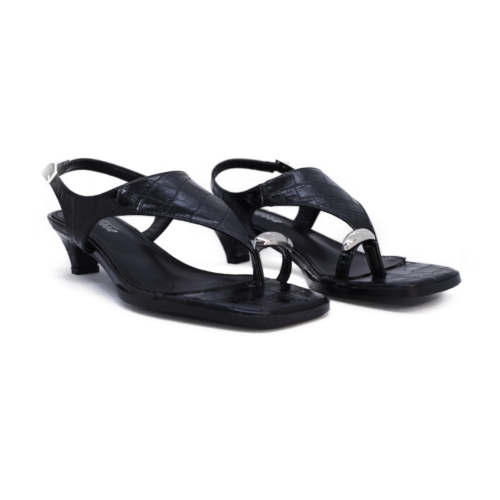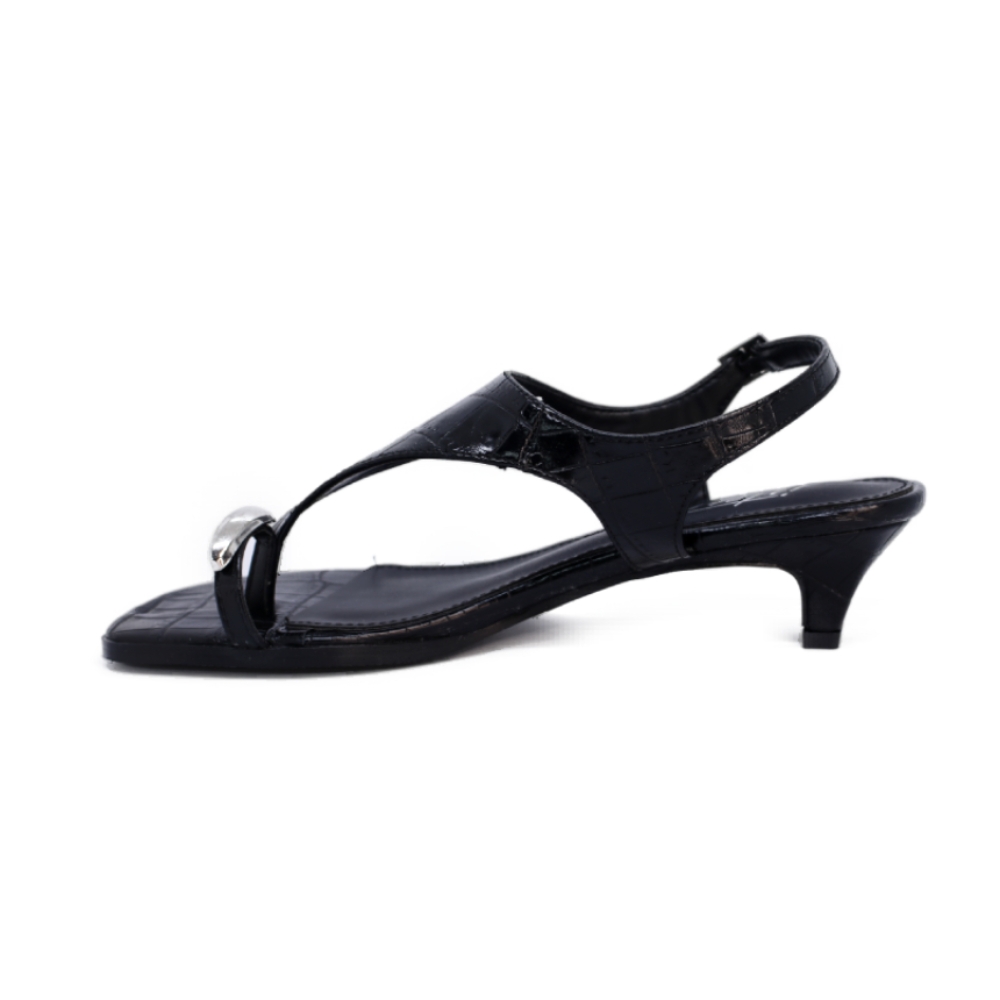 Sujeción: Cuenta con una tira fina que rodea el tobillo y se cierra mediante una hebilla metálica lateral, permitiendo un ajuste seguro.