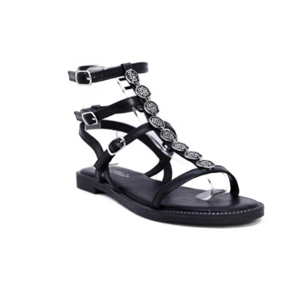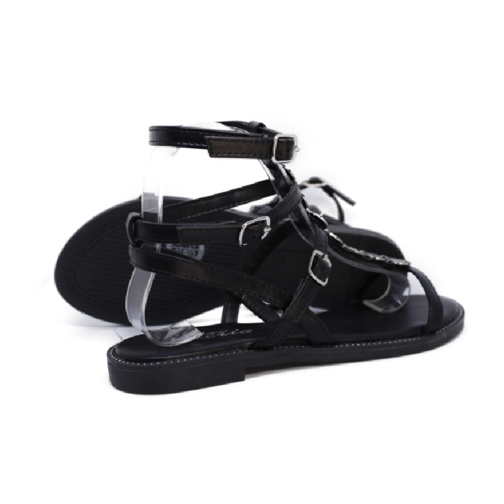 Diseño Vanguardista: Estructura tipo "gladiadora" con tiras cruzadas en color negro atemporal.