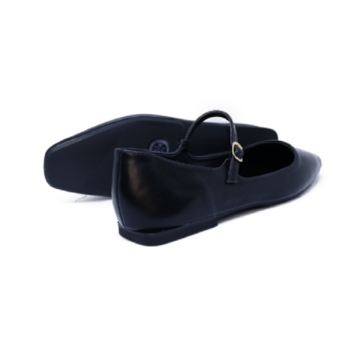 Bailarinas de mujer con hebilla realizadas en suave material negro. Un zapato ideal para cualquier look de esta nueva temporada. Suela media tapa negra