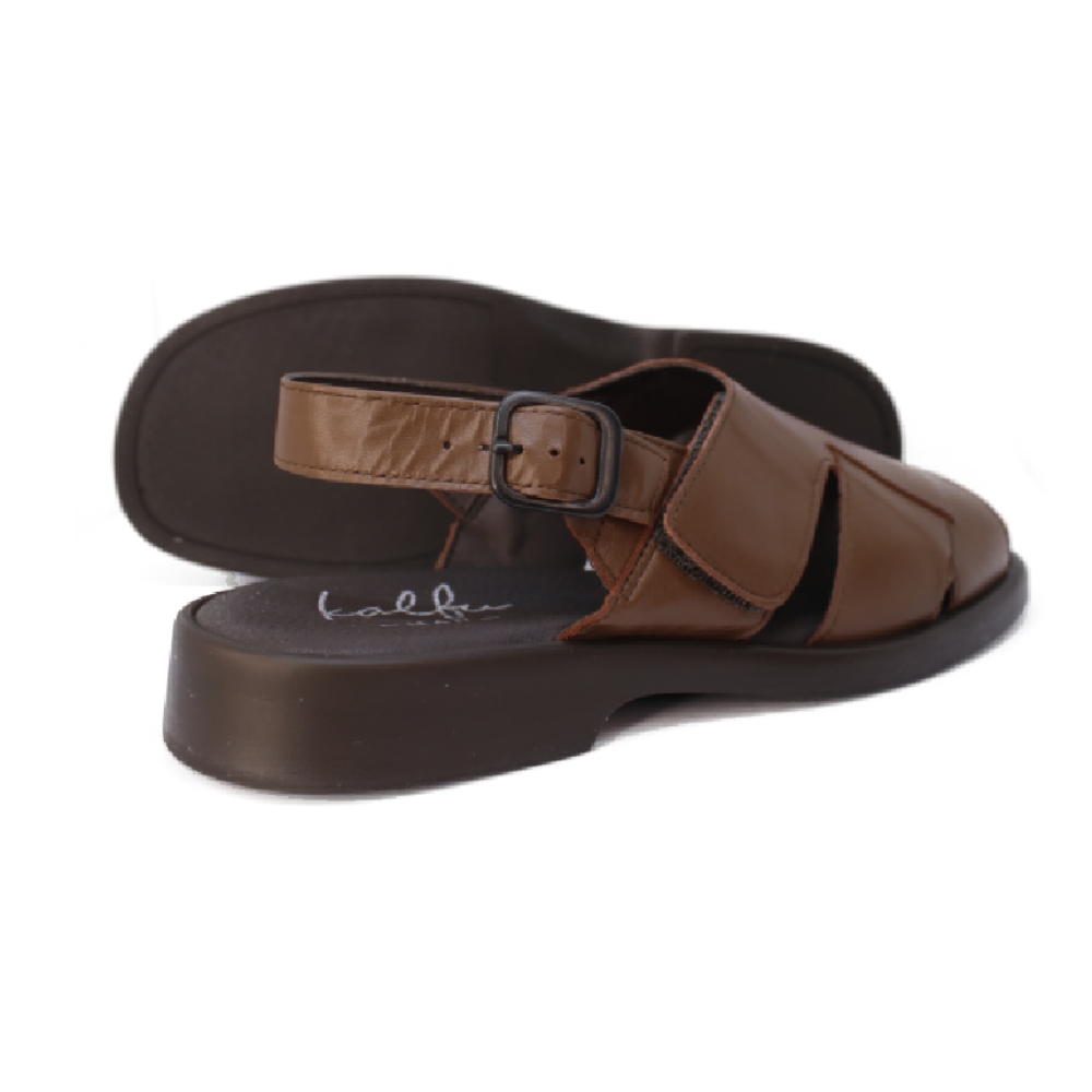 Sandalias veraniegas ideales para hombres, descubierta de punta y talón, cierre con hebilla, exterior e interior de piel, piso de goma antideslizante. Viene con cierre adhesivo en el empeine y tira en el talón con una hebilla.