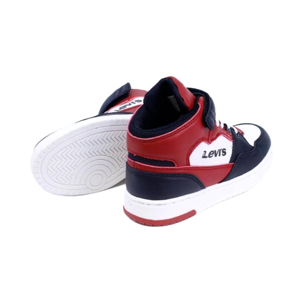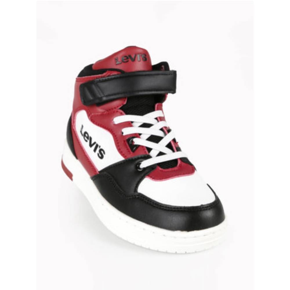 Bota casual niño marca Levis en tonos negro, granate y blanco  con velcro y cordones.