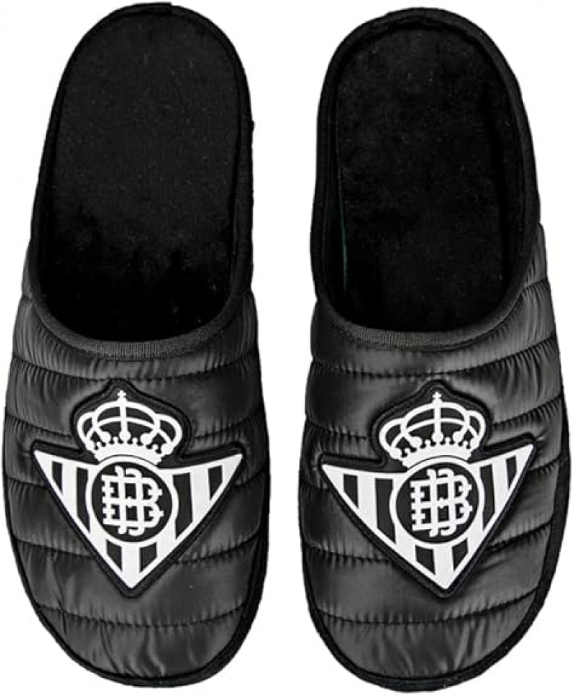 Nuestro modelo más deportivo es esta zapatilla en tejido amatista, diseñada en negro con un gran logo del club. Una combinación ganadora para estas zapatillas que no podrás quitarte.