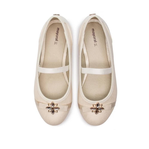 Bailarinas para niña de estilo elegante. Con este zapato completarás sus estilismosmás especiales. Forro interior y plantilla de piel. Todos nuestros zapatos se realizan con pieles libres de cromo. Suela de goma antideslizante y flexible. Cierre con velcro ajustable que garantiza una perfecta sujeción del pie.
