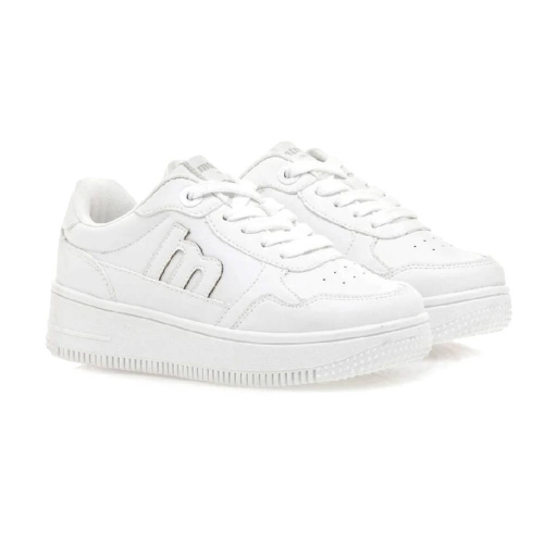 Zapatilla deportiva Gravity Mustang para niña. Diseñada en color blanco con los cordones al tono, destaca especialmente gracias a su cómoda doble suela. Logo de la marca bordado en el lateral de la zapatilla. Incluye el nombre de la marca en la lengüeta. Serán su opción preferida para ir al cole o salir a pasear. Con certificado VEGANO sellado por INESCOP, el cual garantiza que la naturaleza química principal del material no se corresponde con fibras de origen anim
