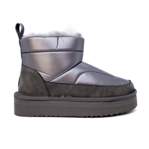 El modelo color plata cuenta con un forro interior de pelo que proporciona calidez necesaria para los días más fríos de invierno. Además, los materiales de alta calidad y su suela de doble piso aíslan los pies del frío suelo.