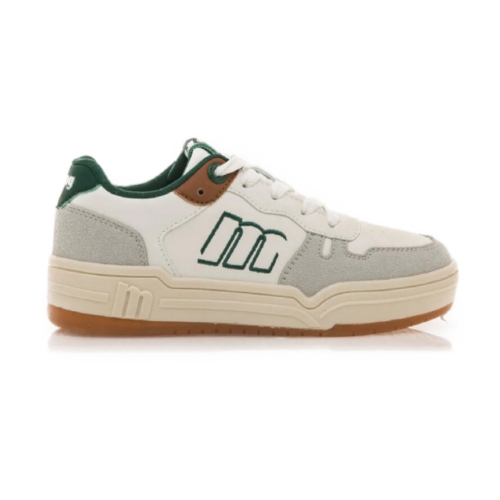 Zapatilla de niño de color blanco con detalles en verde de la marca Mustang, modelo Nana. Estas zapatillas de estilo urbano tienen un diseño retro que aporta un look moderno y versátil para los más pequeños. Con certificado VEGANO sellado por INESCOP, el cual garantiza que la naturaleza química principal del material no se corresponde con fibras de origen animal. Los detalles en verde y marrón añaden un toque distintivo, mientras que el cierre de cordones ofrece un ajuste seguro. Ideales para actividades cotidianas y para combinar con cualquier conjunto casual.