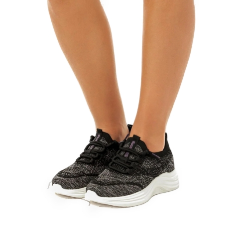 Zapatilla deportiva Blow Mustang para mujer, con diseño de estilo comfy, con diseño en tejido de punto, hecho de fibras sintéticas de colores blanco y negro, dando elasticidad y capacidad para envolver el pie de manera ajustada y cómoda. Cómoda suela de goma, perfecta para amortiguar cada pisada. Se convertirán en tus nuevas favoritas para salir a caminar.