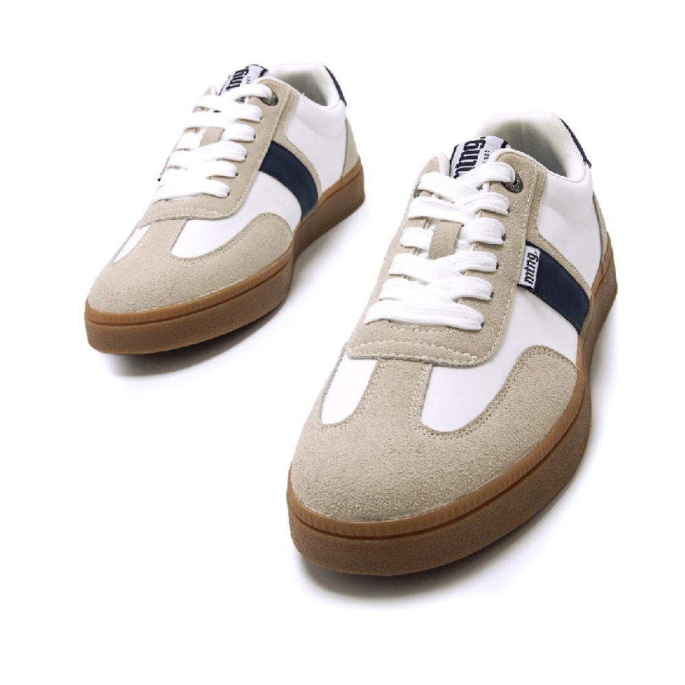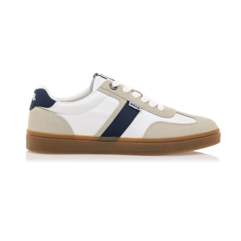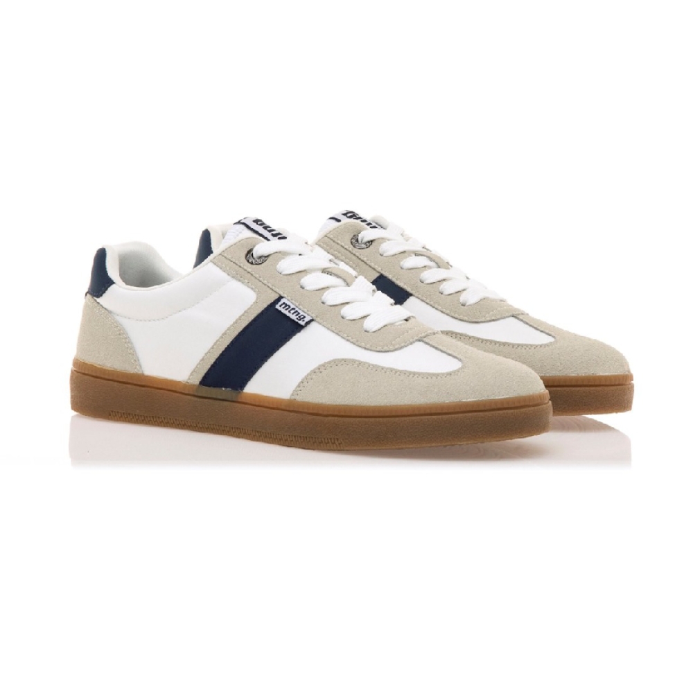 Zapatilla deportiva Goal mtng para hombre, inspirada en la clásica bamba blanca con cordones al tono, incluye paneles de color arena y azul marino. Nombre de la marca en la lengüeta. Te llevarán todo lo lejos que necesites ir.