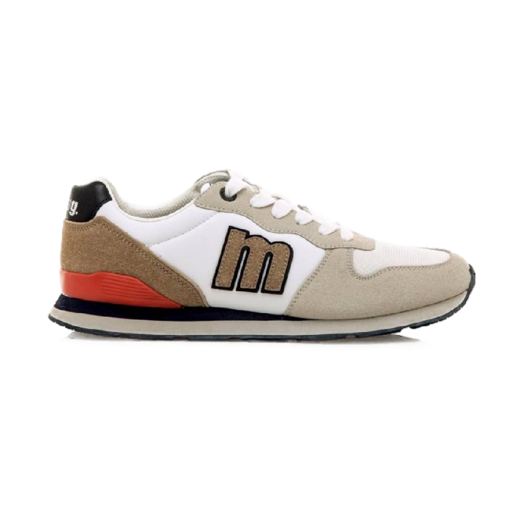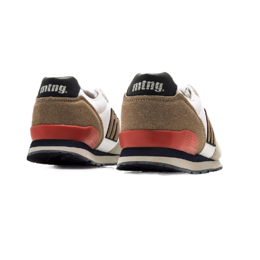 Zapatillas de hombre de la marca Mtng, modelo Joggo Classic de color blanco con detalles beige y rojo, diseño casual con inspiración deportiva. Este deportivo combina paneles de texturas suaves y el logotipo lateral en relieve, aportando un toque moderno. Su suela ligera y antideslizante garantiza comodidad y estabilidad, siendo una opción perfecta para el uso diario o para completar looks relajados con un toque dinámico. Incorporan una plantilla de 4 mm con tecnología Starfit, estas zapatillas ofrecen una pisada suave y cómoda. Su espuma Comfort Foam aporta un acolchado extra, ideal para disfrutar de un confort prolongado en cada uso. Con certificado VEGANO sellado por INESCOP, el cual garantiza que la naturaleza química principal del material no se corresponde con fibras de origen animal.