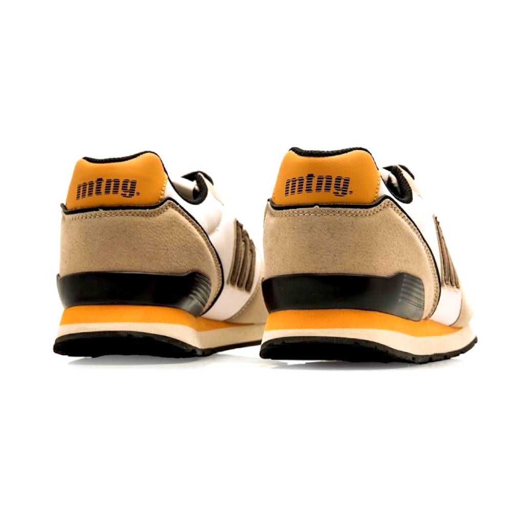 Zapatillas de hombre de la marca Mtng, modelo Joggo Classic de color blanco con detalles beige y amarillo, diseño casual con inspiración deportiva. Este deportivo combina paneles de texturas suaves y el logotipo lateral en relieve, aportando un toque moderno. Su suela ligera y antideslizante garantiza comodidad y estabilidad, siendo una opción perfecta para el uso diario o para completar looks relajados con un toque dinámico. Incorporan una plantilla de 4 mm con tecnología Starfit, estas zapatillas ofrecen una pisada suave y cómoda. Su espuma Comfort Foam aporta un acolchado extra, ideal para disfrutar de un confort prolongado en cada uso. Con certificado VEGANO sellado por INESCOP, el cual garantiza que la naturaleza química principal del material no se corresponde con fibras de origen animal.