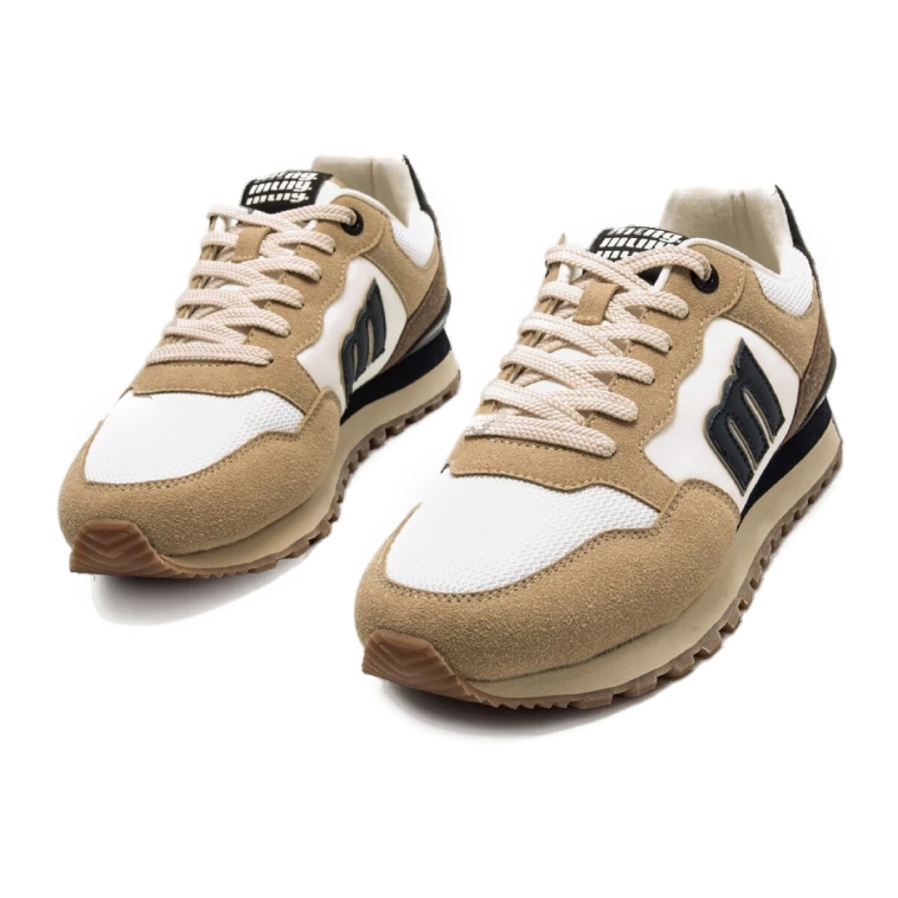 Zapatillas de color beige para hombre, modelo Joggo Track de Mustang. Su combinación de tonos neutros y detalles en contraste, como el logo lateral en negro y el refuerzo en el talón, les aporta un toque moderno y versátil. La suela dentada ofrece un buen agarre en cada pisada. Incorporan una plantilla de 4 mm con tecnología Starfit, estas zapatillas ofrecen una pisada suave y cómoda. Su espuma Comfort Foam aporta un acolchado extra, ideal para disfrutar de un confort prolongado en cada uso.