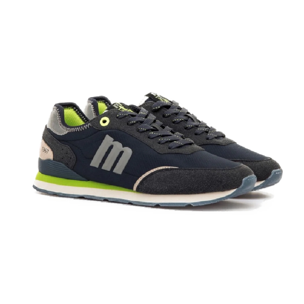 Zapatillas de color azul marino para hombre de la marca Mtng, modelo Joggo Classic de estilo deportivo. Este diseño combina paneles de diferentes texturas con detalles en gris y toques de color verde lima, aportando un aspecto dinámico y actual. Equipadas con plantillas con tecnología Starfit, que mejoran la comodidad en cada paso. El logotipo lateral en relieve y la inscripción “1967” en el talón refuerzan la identidad de la marca. Perfectas para quienes buscan un calzado urbano con inspiración retro. Con certificado VEGANO sellado por INESCOP, el cual garantiza que la naturaleza química principal del material no se corresponde con fibras de origen animal.